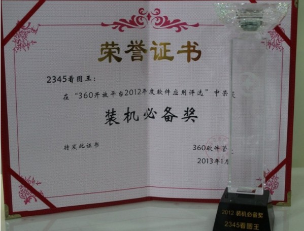 日前,360開放平臺2012年度軟件應用評選結(jié)果已全面揭曉,本次活動從參選的480款軟件中評選出裝機必備獎、新秀軟件獎、用戶歡迎獎和行業(yè)貢獻獎等14大類獎項。相比去年,今年獲獎名單中增加了不少新銳軟件,其中表現(xiàn)最為突出的就是2345看圖王。它以超過13萬的票數(shù)摘得2012年度裝機必備獎!