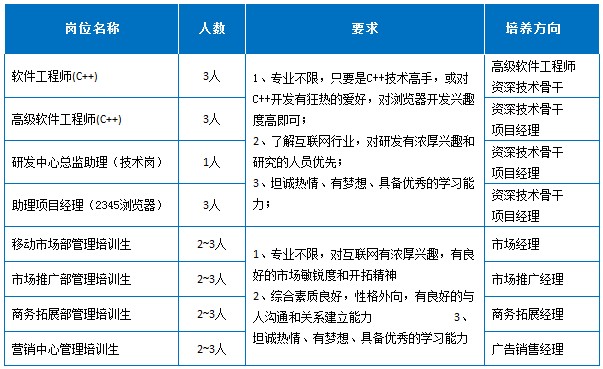 2345.com2014年校園招聘即將熱力啟動,八大職位,具有競爭力的薪資待遇,CEO親自宣講,副總裁帶隊(duì)培養(yǎng),就等你來!