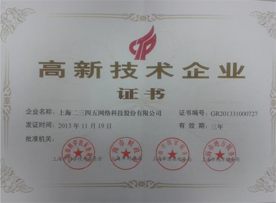 3月24日,上海二三四五網(wǎng)絡(luò)科技股份有限公司獲得上海市科學(xué)技術(shù)委員會(huì)、上海市財(cái)政局、上海市國(guó)家稅務(wù)局和上海市地方稅務(wù)局聯(lián)合頒發(fā)的高新技術(shù)企業(yè)證書,。公司被認(rèn)定為高新技術(shù)企業(yè),有效期為三年。根據(jù)相關(guān)規(guī)定,公司可以享受所得稅兩免三減半的優(yōu)惠政策,即前兩年免收企業(yè)所得稅,第三年至第五年按照12.5%征收(正常為25%),第五年以后按照15%征收企業(yè)所得稅。這將有助于降低公司稅負(fù),提高未來業(yè)績(jī);同時(shí),這為公司打造創(chuàng)新型企業(yè)帶來了新的機(jī)遇,使公司在下一步創(chuàng)新發(fā)展過程中有可能爭(zhēng)取到國(guó)家更多的技術(shù)和政策支持。