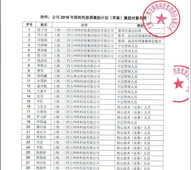 2016年限制性股票激勵計劃激勵對象名單公示的通知