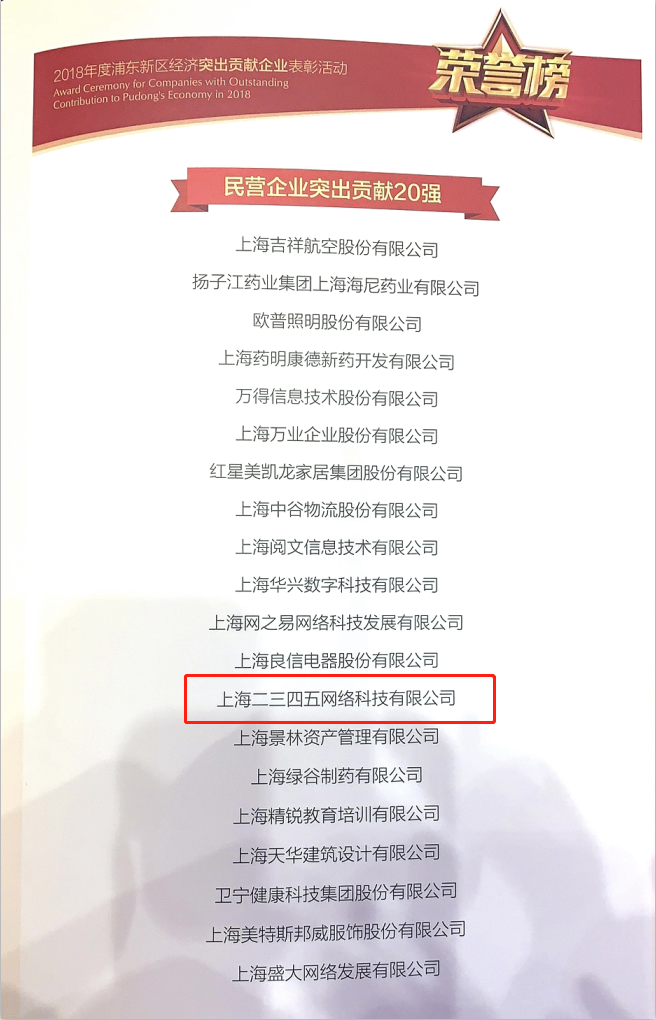 4月2日,由上海市浦東新區(qū)人民政府主辦的“2018年度浦東新區(qū)經(jīng)濟(jì)突出貢獻(xiàn)企業(yè)表彰活動(dòng)”在滬隆重舉行,浦東新區(qū)區(qū)委、區(qū)政府、區(qū)人大和區(qū)政協(xié)的領(lǐng)導(dǎo)悉數(shù)出席。會(huì)上,上海二三四五網(wǎng)絡(luò)科技有限公司(以下簡(jiǎn)稱“二三四五”)憑借在互聯(lián)網(wǎng)科技方面的不懈努力,榮獲“2018年度浦東新區(qū)民營(yíng)企業(yè)突出貢獻(xiàn)獎(jiǎng)20強(qiáng)”,二三四五副總裁羅繪代表企業(yè)上臺(tái)領(lǐng)獎(jiǎng)。