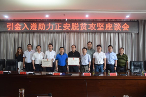 2019年6月24日,正安縣“引金入遵助力正安脫貧攻堅座談會”隆重召開,會議由上海援黔干部、正安縣縣委常委、副縣長李國文主持,正安縣各級領(lǐng)導(dǎo)班子,二三四五集團(tuán)黨支部書記、二三四五集團(tuán)董事、貴州融海融資擔(dān)保有限公司董事長黃國敏,二三四五公司相關(guān)負(fù)責(zé)人等出席會議。會議的召開,標(biāo)志著引金入遵助力正安脫貧攻堅行動全面開啟。會上,正安縣各級領(lǐng)導(dǎo)就貴州融海融資擔(dān)保有限公司成立作出指示。