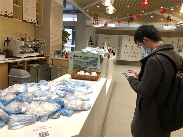 二三四五為復(fù)工人員提前準(zhǔn)備了消毒防護(hù)物品。每位進(jìn)辦公樓的二三四五伙伴,可掃碼領(lǐng)
