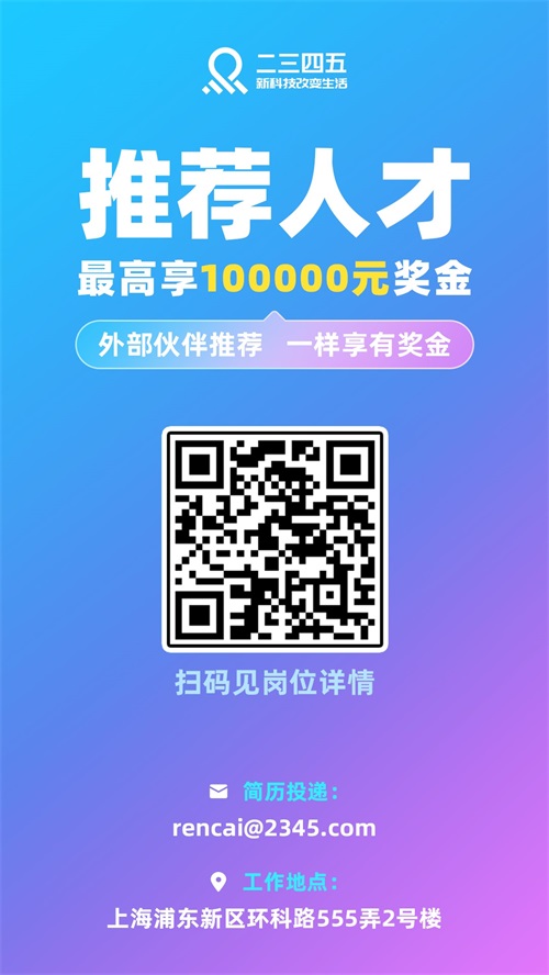 耳聽(tīng)為虛,眼見(jiàn)為實(shí)??戳松厦嫘禄锇榈?ldquo;買(mǎi)家秀”,有沒(méi)有心動(dòng)呢?快加入2345的大家庭,和我們一起玩耍吧!這里有經(jīng)驗(yàn)豐富的大佬、志同道合的同事、全面貼心的行政服務(wù)、業(yè)界良心的滿(mǎn)滿(mǎn)福利……2345大舞臺(tái),期待與你共創(chuàng)未來(lái)!