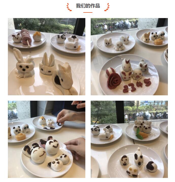 DIY現(xiàn)場的氣氛十分活躍,幾袋平常的面粉,加上餡料,在咱們2345小伙伴的手里,像變魔術(shù)一樣,包出了各種圖案的作品:小兔子、愛心、娃娃,當(dāng)然還有我們幸運(yùn)的小章魚。