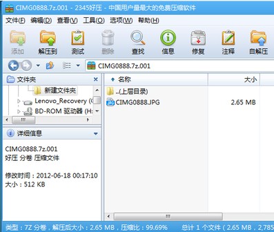 再比如001格式,這個(gè)格式是7z老式分卷,當(dāng)看到這種莫名的文件格式時(shí),不妨請(qǐng)2345好壓解壓縮軟件來(lái)幫忙,可以完全支持這種格式的解壓。